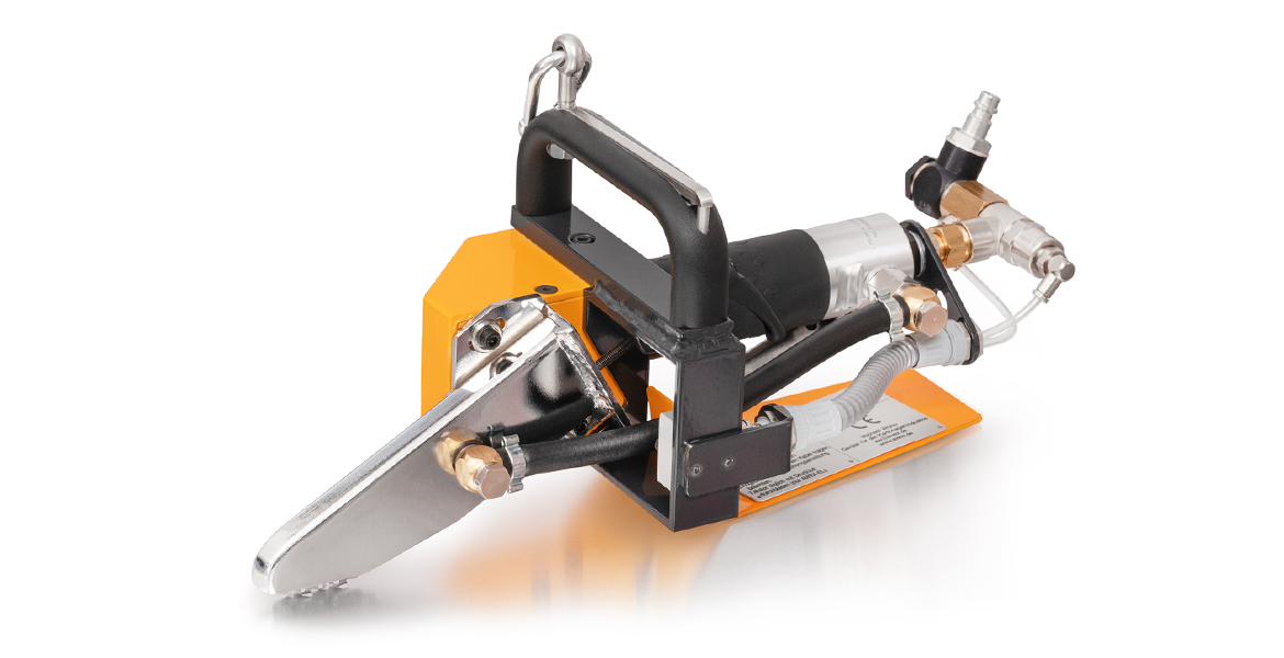 Our filigree carton-stripper is the compressed air-operated AWEX-8AC 2hand carton-stripper. The AWEX-8AC 2hand is equipped with a hardened, very narrow and filigree 8mm wide chain (type 8). The width of the protective cover in this version is 15,5mm. The AWEX-8AC 2hand is equipped with a two-hand safety control. This version requires both hands to press levers on the AWEX to start the carton-stripper. If a lever is no longer pressed, the device switches off immediately. Thanks to its ATLAS COPCO compressed air drive, the AWEX-8AC 2hand is very robust and very low-maintenance. Our decades of experience with ATLAS COPCO compressed air motors have also convinced our customers of the very good performance and high quality of these motors.