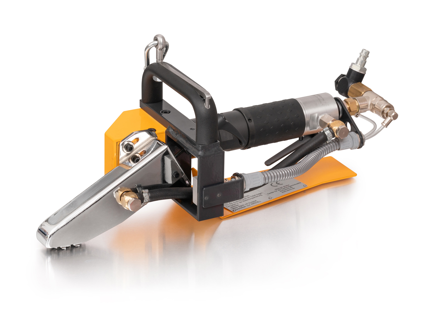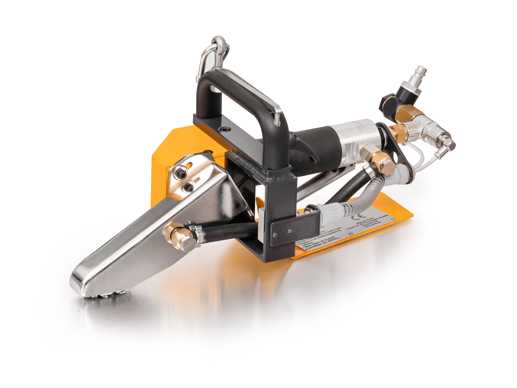 “the new filigree“ Our filigree carton-stripper is the compressed air-operated AWEX-8AC 2hand carton-stripper. The AWEX-8AC 2hand is equipped with a hardened, very narrow and filigree 8mm wide chain (type 8). The width of the protective cover in this version is 15,5mm. The AWEX-8AC 2hand is equipped with a two-hand safety control. This version requires both hands to press levers on the AWEX to start the carton-stripper. If a lever is no longer pressed, the device switches off immediately. Thanks to its ATLAS COPCO compressed air drive, the AWEX-8AC 2hand is very robust and very low-maintenance. Our decades of experience with ATLAS COPCO compressed air motors have also convinced our customers of the very good performance and high quality of these motors.
